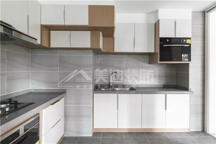 適用戶型:廚房面積不大的小戶型,例如70㎡-100㎡的中小戶型。廚房寬度窄、長度大的空間最適合一字型布局,因為廚房的面積只能做單邊的櫥柜設計。