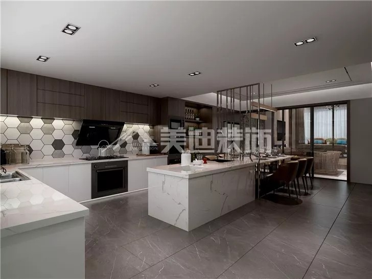 注意:中國式家庭的烹飪方式多是重油重鹽,油煙多,氣味濃,開放式廚房并不算特別適用。而且島型廚房布局對面積要求高,豪宅類廚房足夠大的情況下,選擇島型布局才適合。
