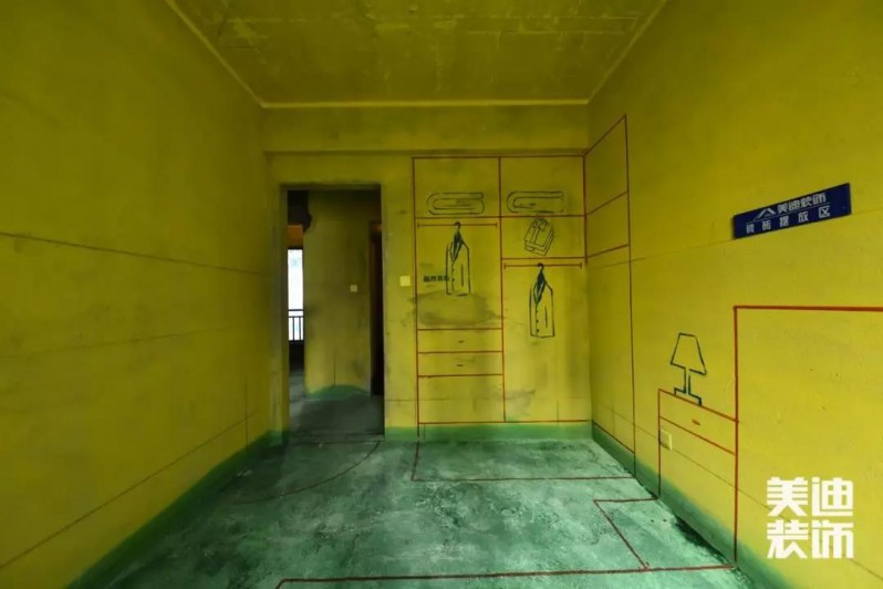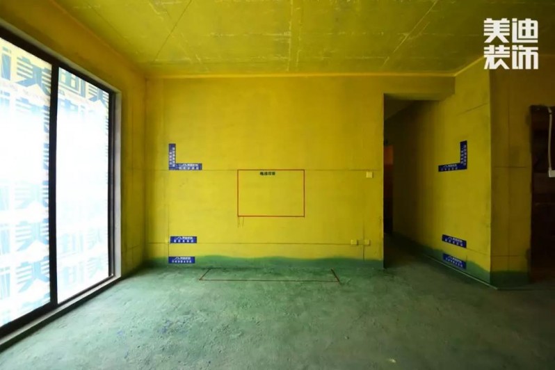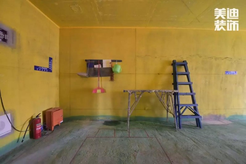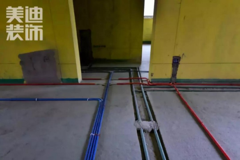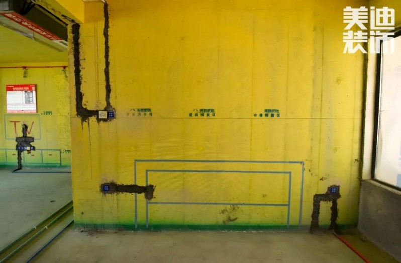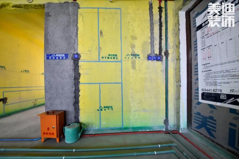 “裝修起始,水電先行”,這個工地在推送時處于水電驗收階段。一進門,便能看到貼有美迪裝飾專用的保護膜,這屬成品保護。它是保證裝修品質的第一步,能對成品進行嚴格保護,預防二次破壞。