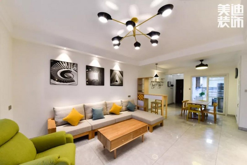 全屋以白色、灰色為主色調,不同顏色家具混搭布置下,又增添了不少活力,簡單裝飾顯得整個家寬敞又整潔。