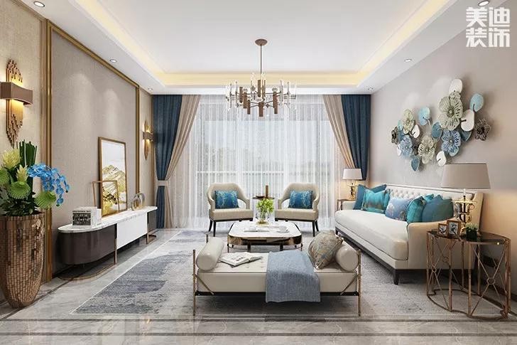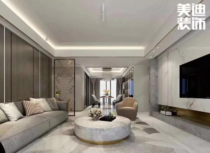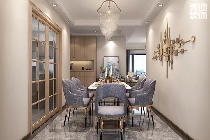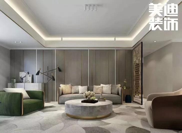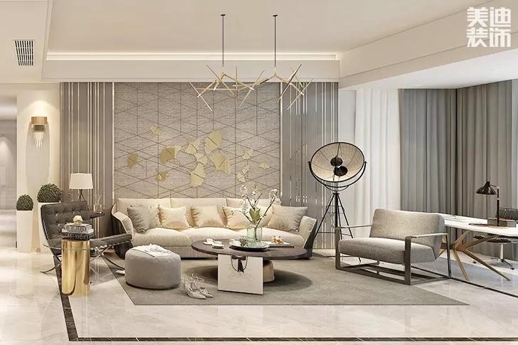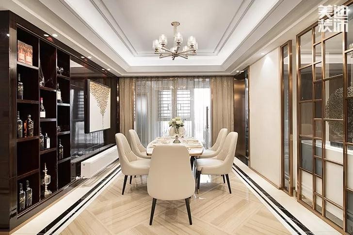 還有,對石材、鏡面、金屬、布藝等材質合理利用,使空間層次豐富。