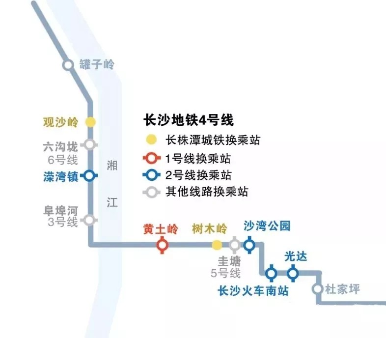 ●可通過地鐵2號(hào)線溁灣鎮(zhèn)、沙灣公園、長沙火車南站、光達(dá)4座車站與地鐵4號(hào)線實(shí)現(xiàn)換乘。