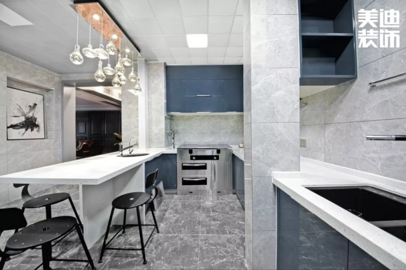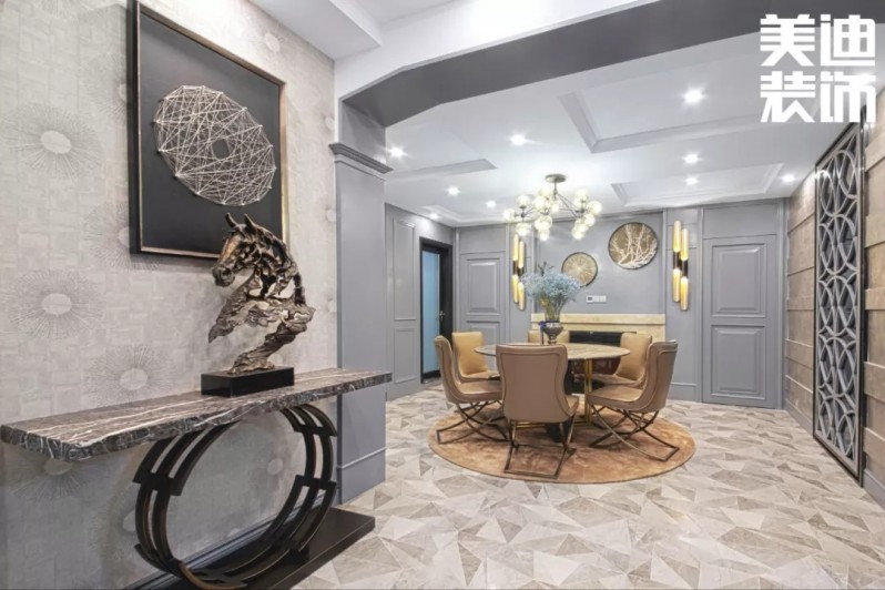 這是一套現(xiàn)代輕奢混搭風(fēng)的作品,濃郁但又不失生機(jī)的墨綠色和藍(lán)色的,是一種獨(dú)特而又復(fù)古的色調(diào)。恰到好處的介于復(fù)古和時(shí)尚之間,給整個(gè)屋子帶來一種時(shí)髦韻味,客廳的吊燈,餐廳的裝飾品,都散發(fā)出精致感,提升了屋內(nèi)的氣質(zhì)。