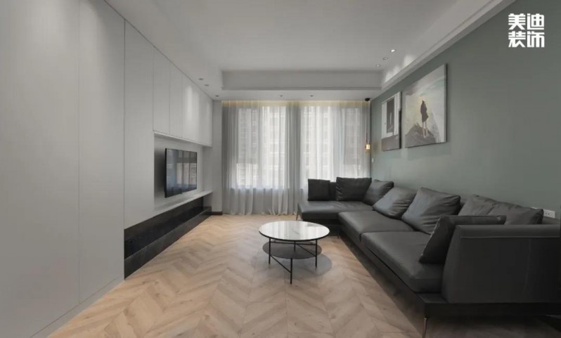 設計師以莫蘭迪無風格的硬裝,把家以清新自然的方式呈現出來。開放式空間設計,把空間留給生活;巧妙搭配色彩,讓色彩在每個有儀式尊嚴的空間自由呼吸;打造整面隱藏壁柜藏在電視背景墻后,十多個立方的巧妙收納隱藏。自然生活融入簡單色彩搭配,把生活留給自己。