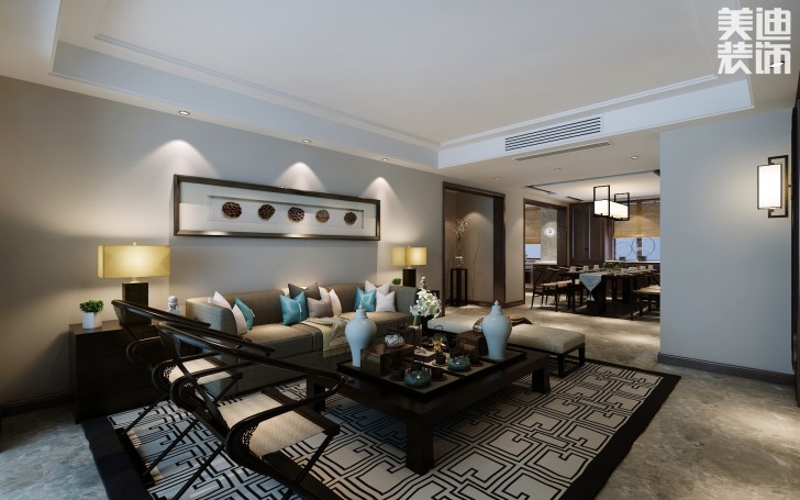 蘭僑公館320平米新中式風格裝修案例效果圖