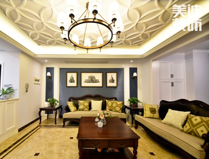 雙灣國際120平米新奢古典案例裝修實拍圖-客廳