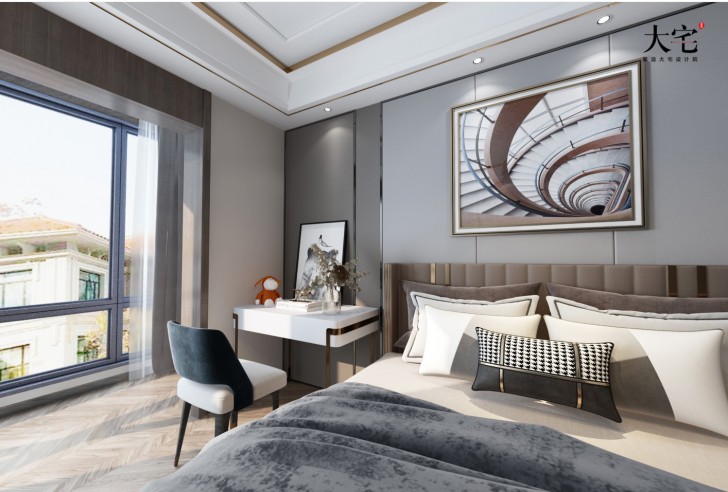 寧鄉自建別墅1000平方米美式風格案例效果圖-主臥