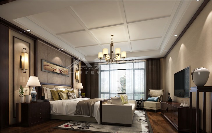 北辰定江洋220平港式風裝修案例圖—臥室