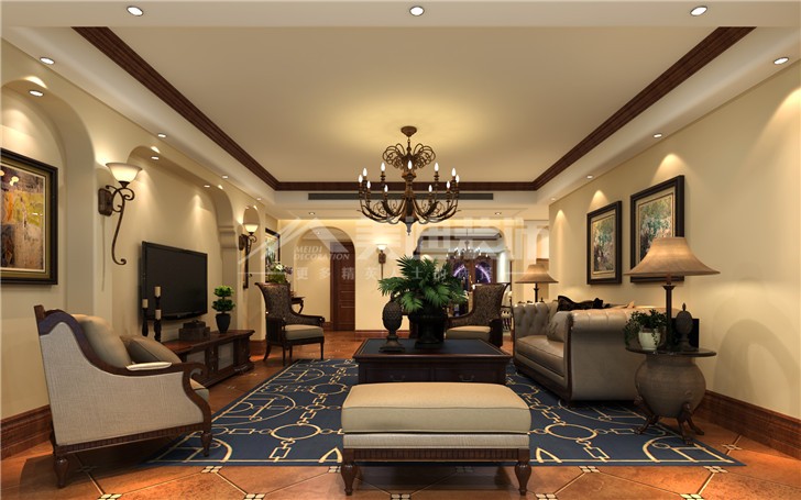 旭輝御府118平歐式風(fēng)裝修案例圖—客廳