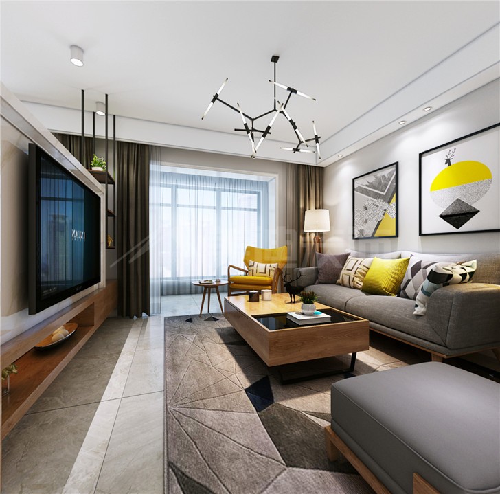 北辰三角洲135平后現代風裝修案例圖—客廳