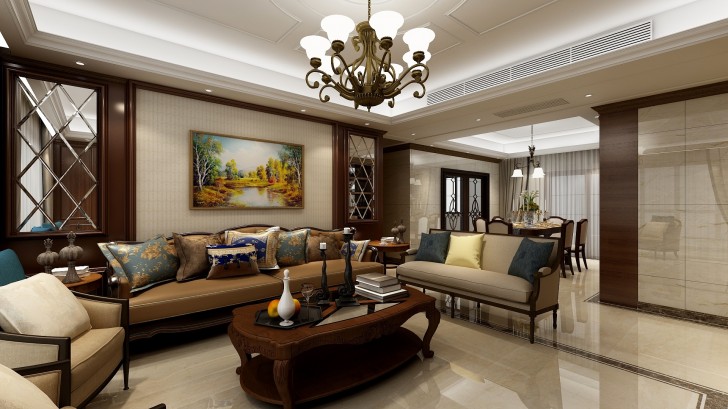 中隆國際御璽220平米美式輕奢風裝修案例實拍圖