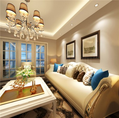 翡翠華庭102平歐式風(fēng)裝修案例圖—客廳