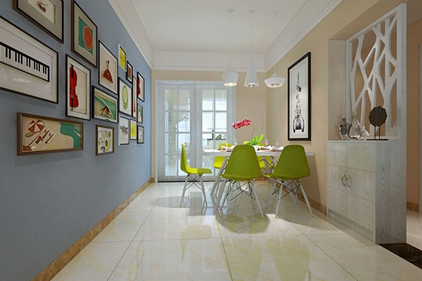 (效果圖-過道)過道上設置了一個餐桌;白色柜子為備用餐柜
